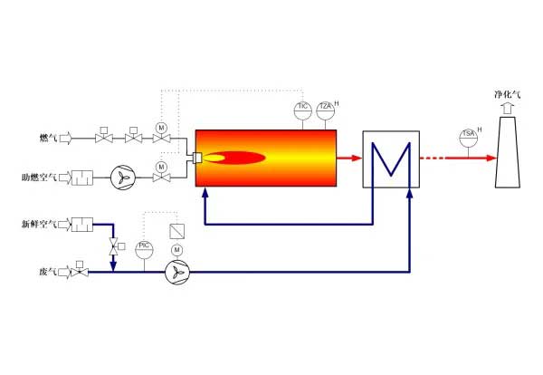 可回收利用廢氣中的熱能,降低能耗。在燃燒或催化燃燒過程中產(chǎn)生的大量熱量可以用于預(yù)熱助燃空氣或其他工藝流程中,實(shí)現(xiàn)能源的再利用,符合循環(huán)經(jīng)濟(jì)和綠色環(huán)保的理念。